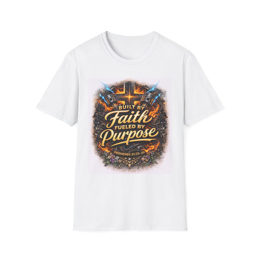 Built by Faith Fueled by Purpose T-Shirt β€” Christian Inspirational Tee with Cross Design