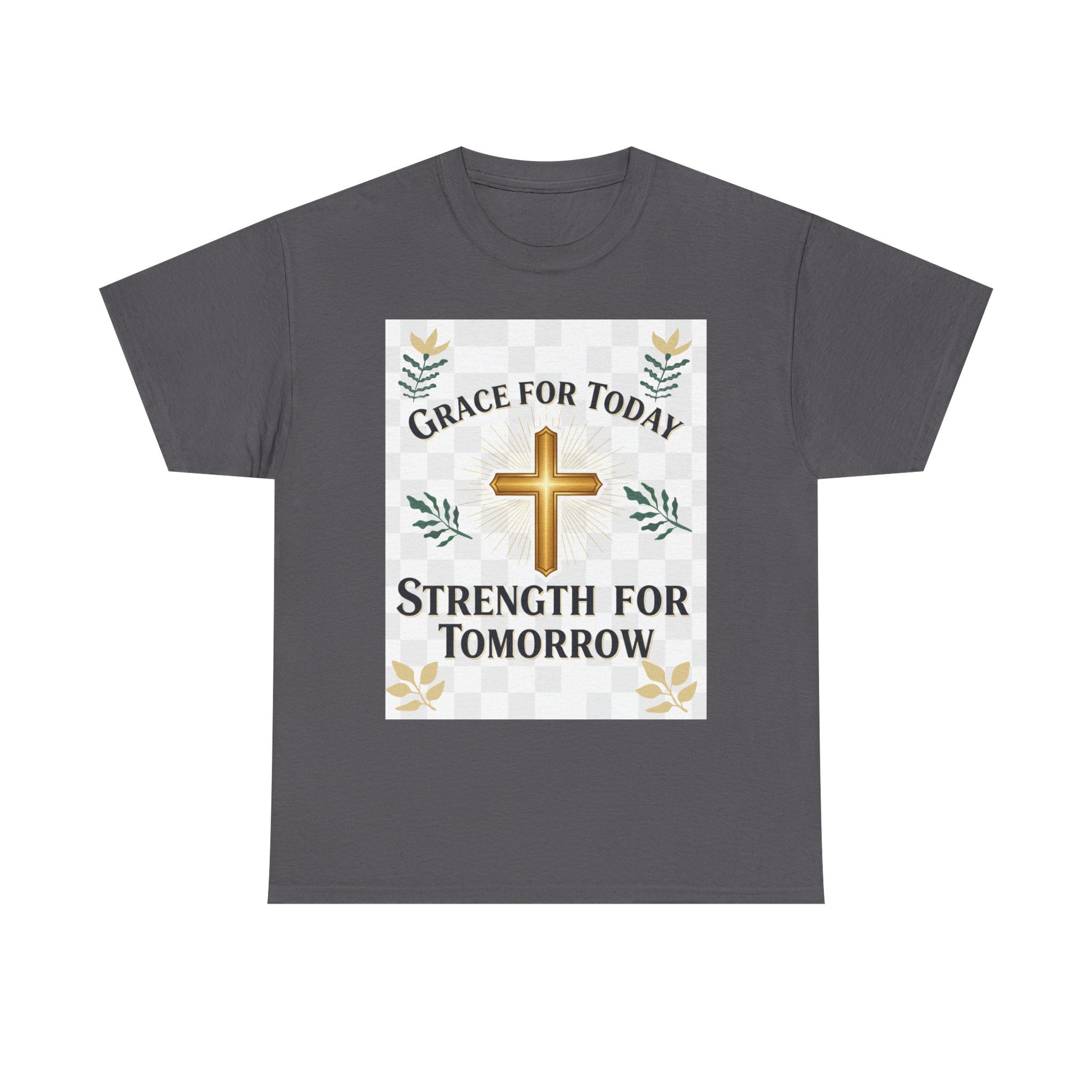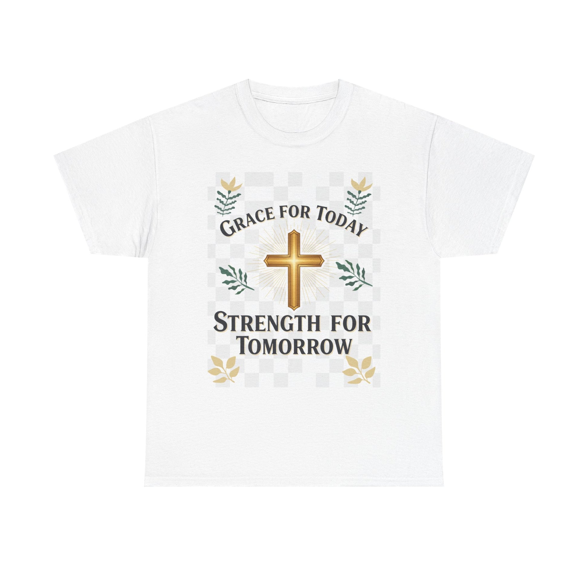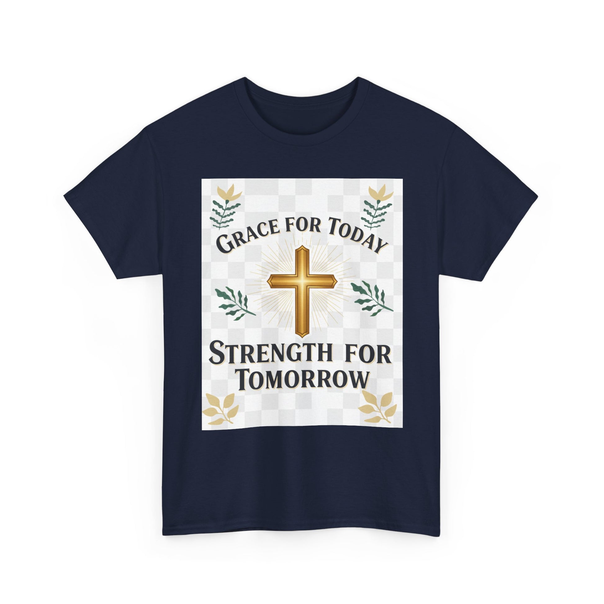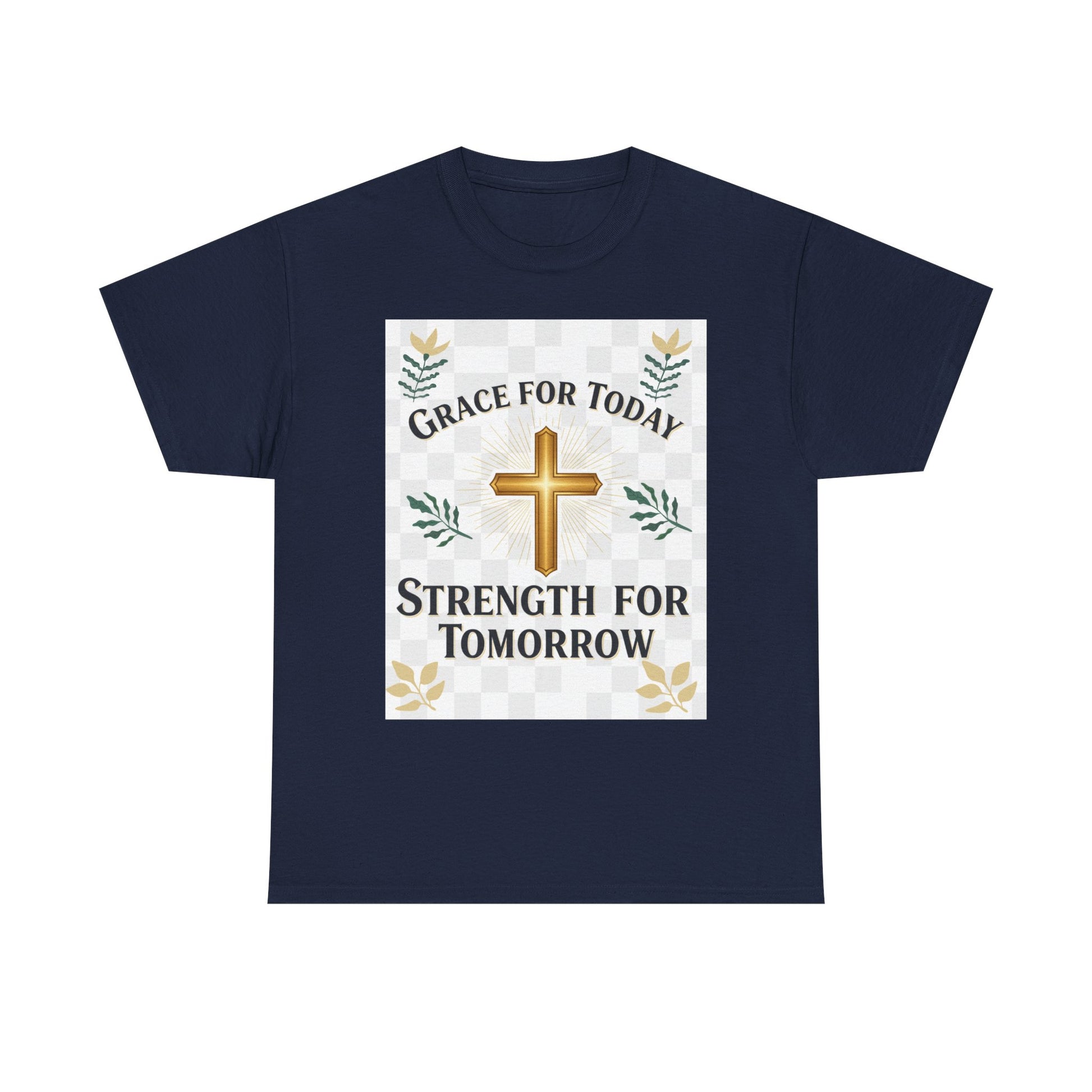 Christian T-Shirt – "Grace for Today, Strength for Tomorrow" Cross Graphic