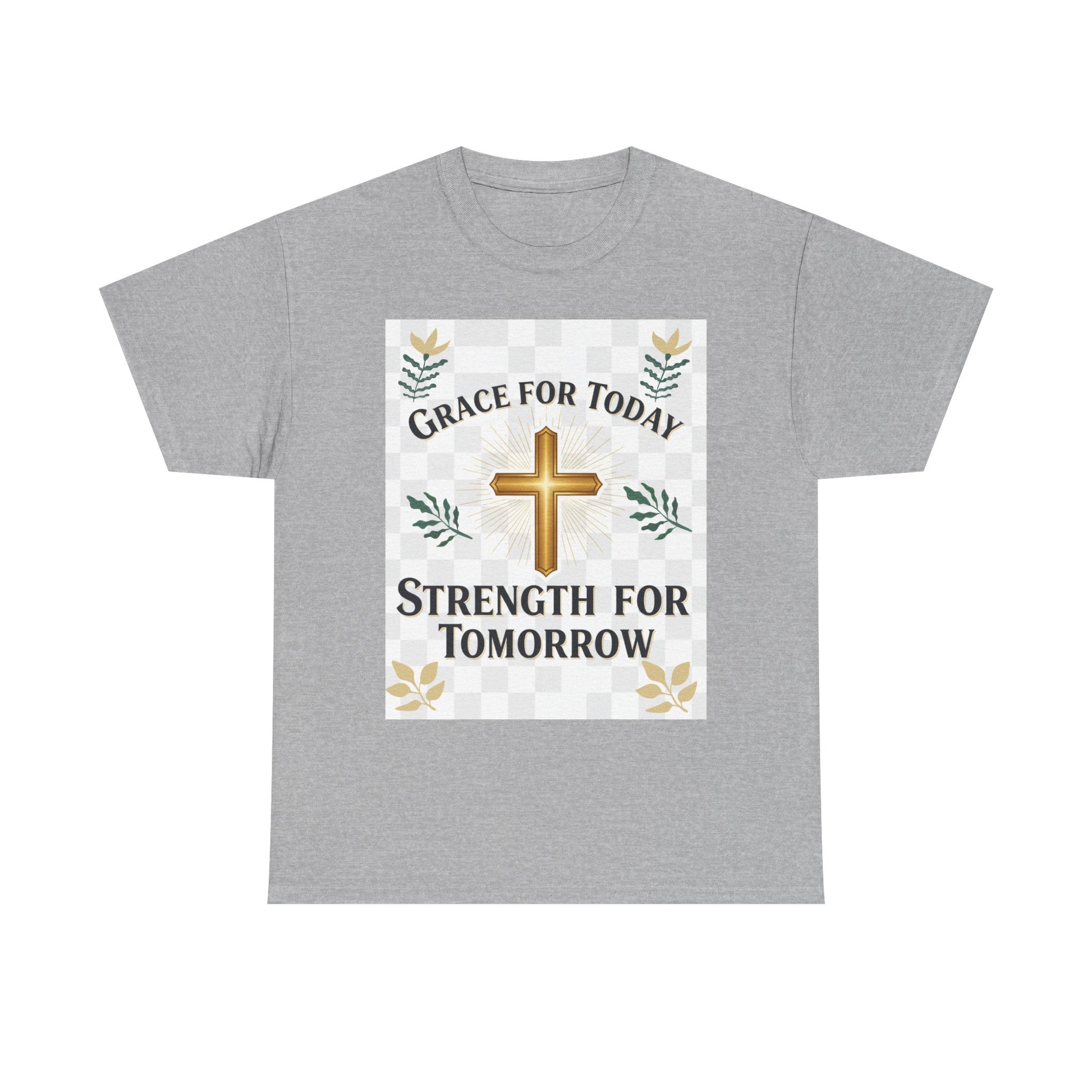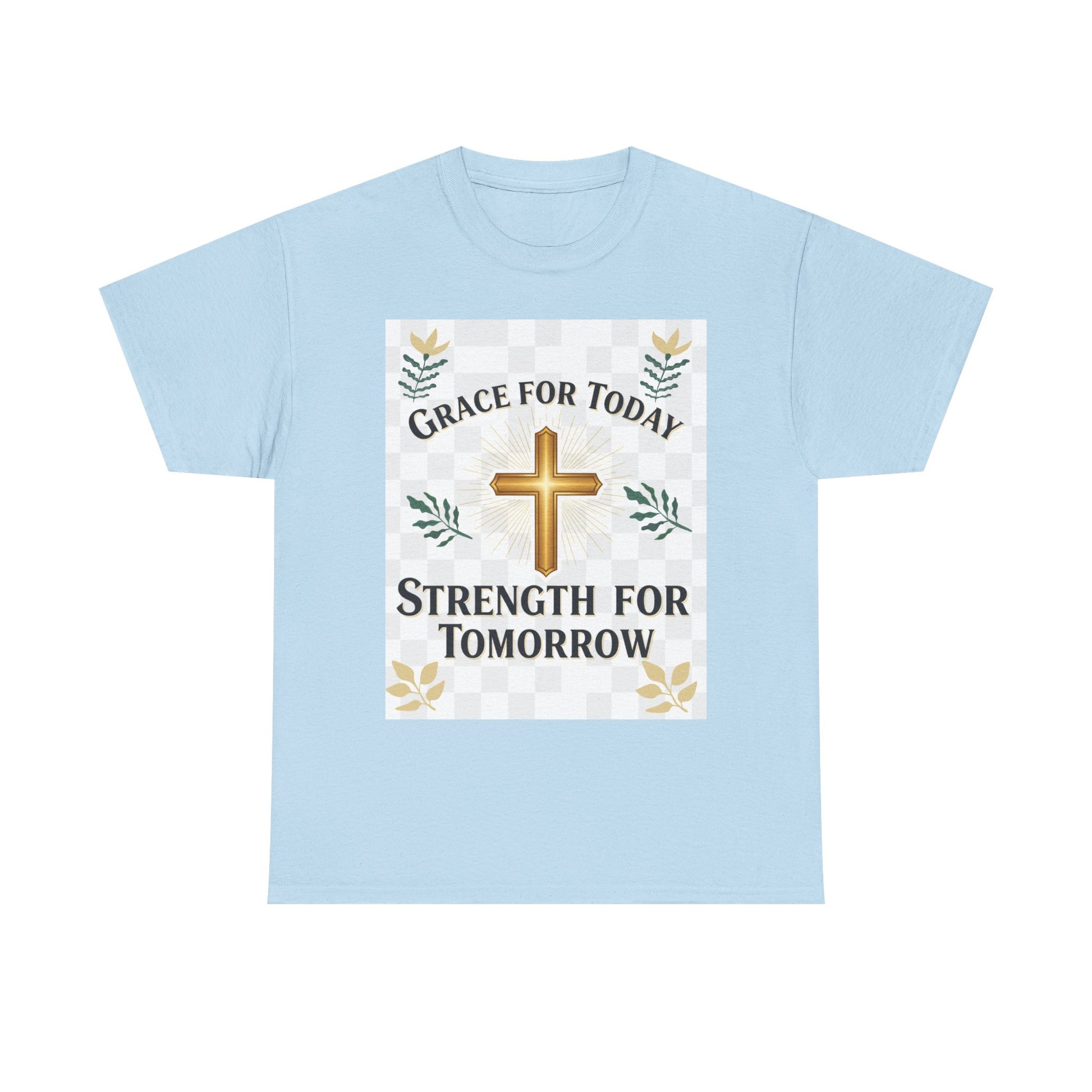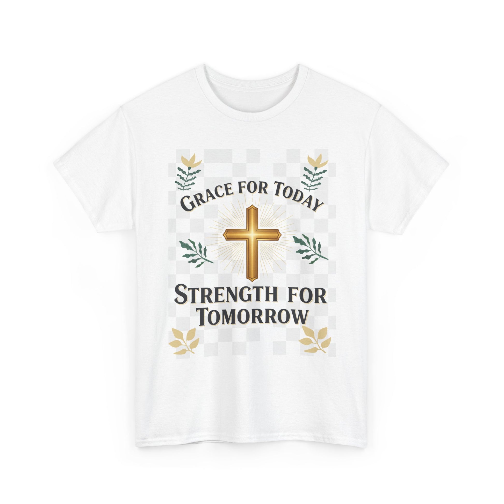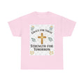 Christian T-Shirt – "Grace for Today, Strength for Tomorrow" Cross Graphic