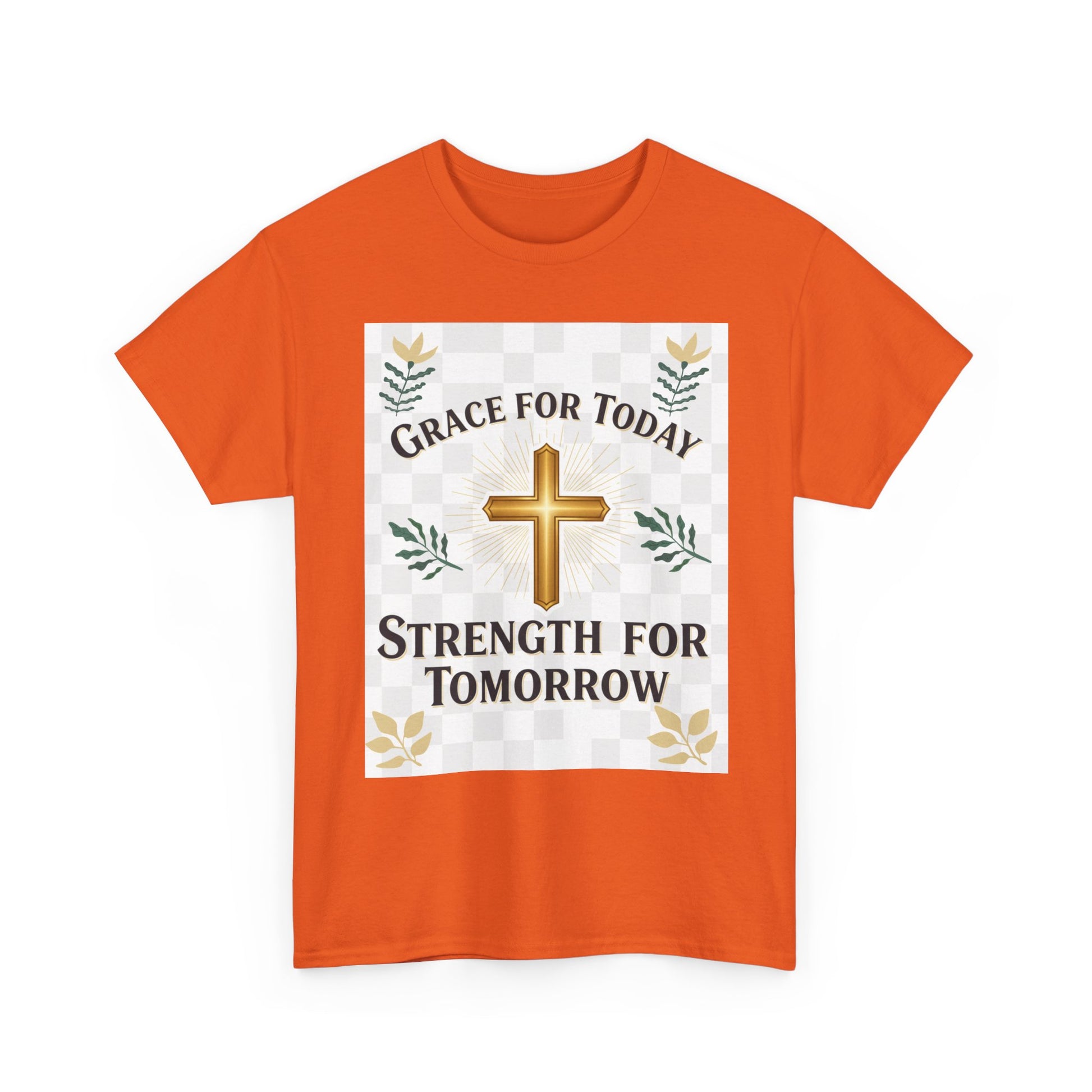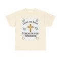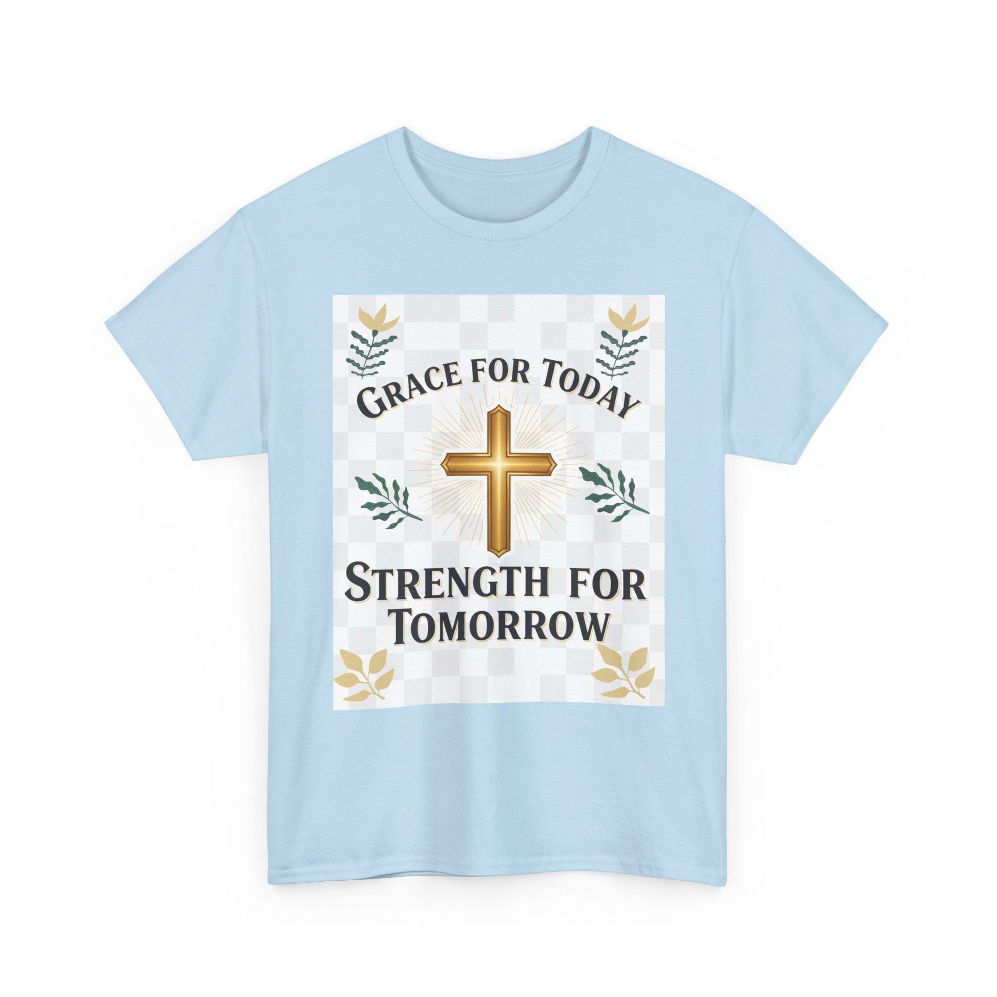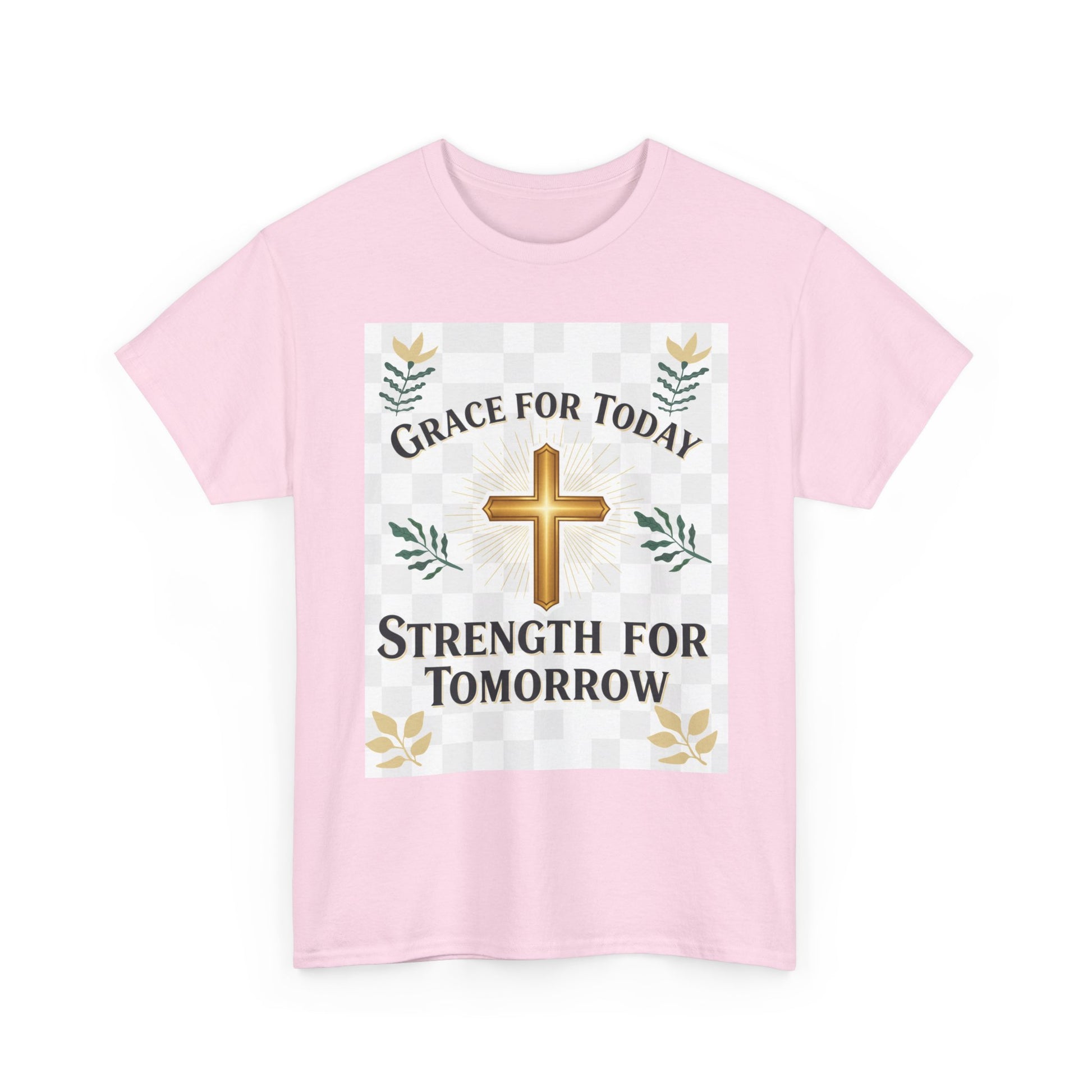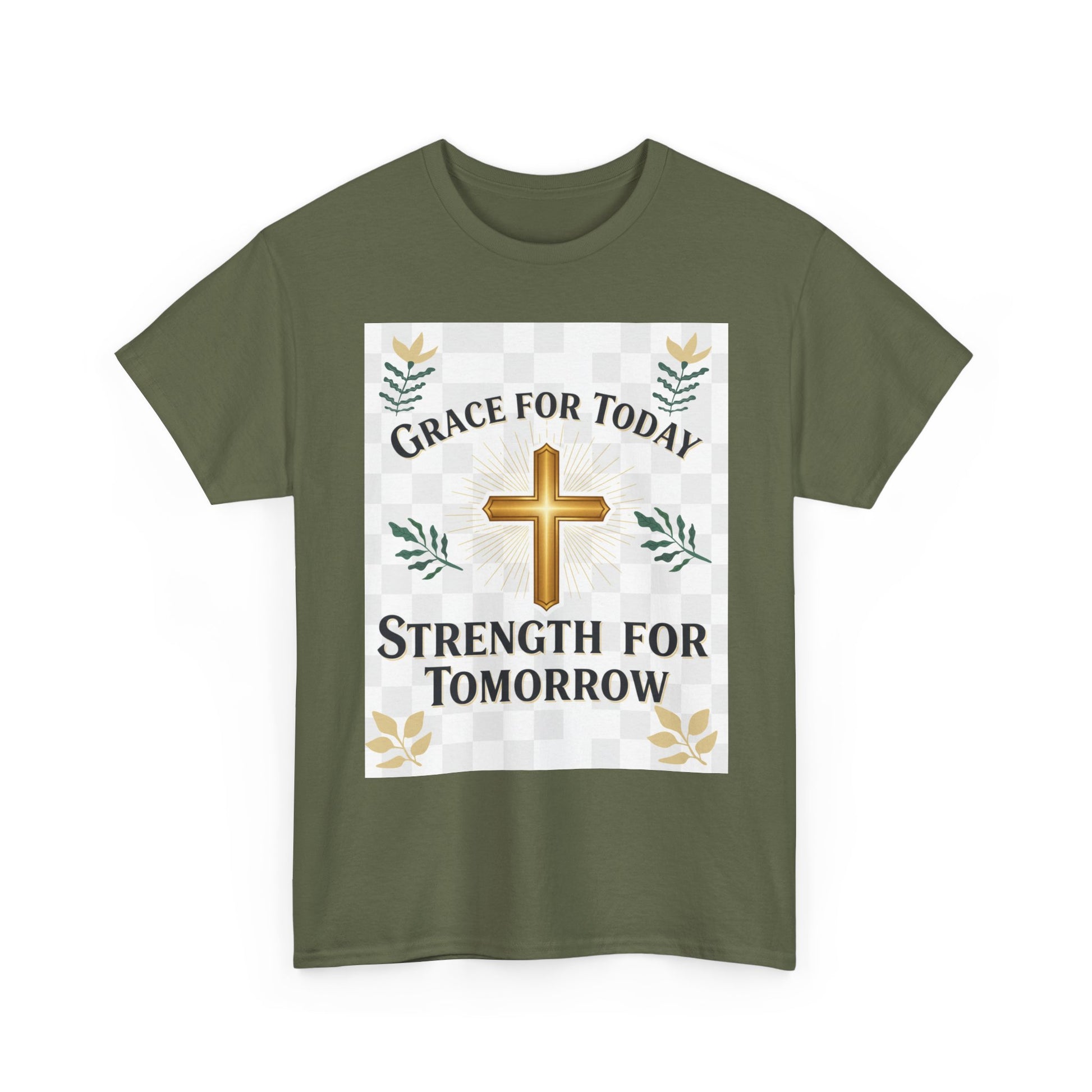 Christian T-Shirt – "Grace for Today, Strength for Tomorrow" Cross Graphic