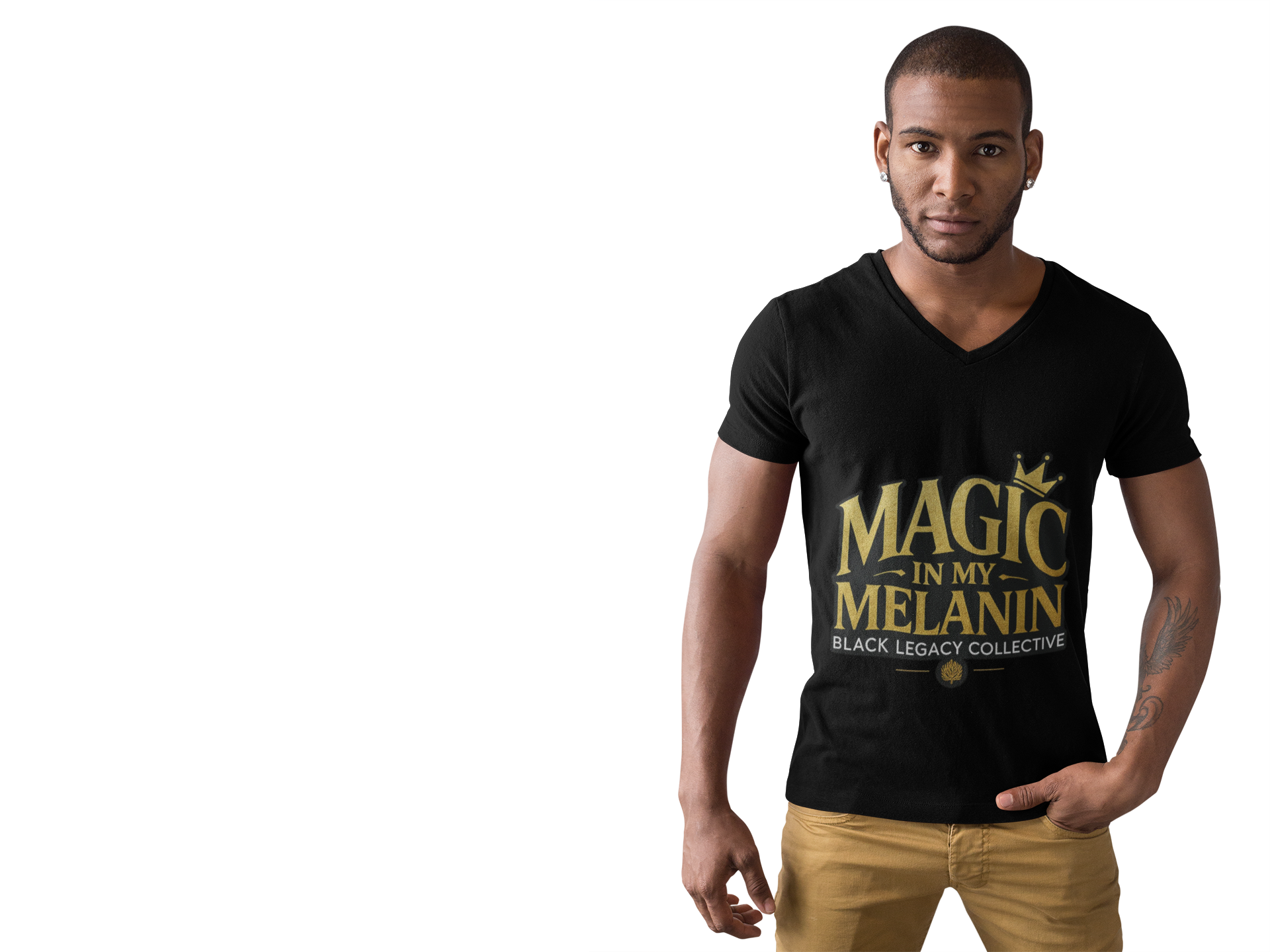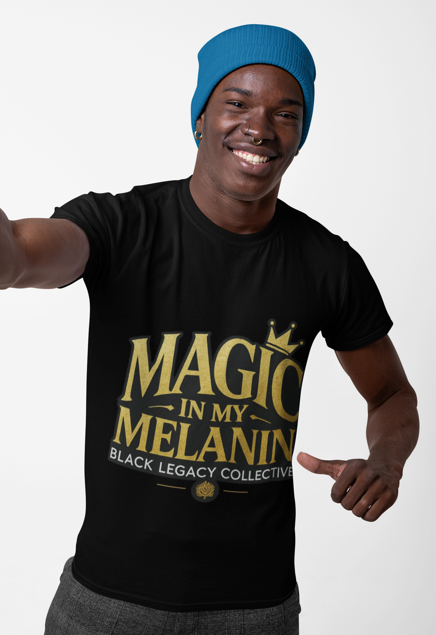Elevate everyday style with a regal melanin statement in gold. “Magic in My Melanin” brings luxe gold script to a soft unisex tee—clean, confident, and ready for every celebration day (and every day).